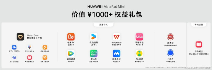 此外,用户现在下单还可享价值超1000元的“鸿蒙有礼”权益礼包,涵盖多项热门应用会员权益和优惠券。