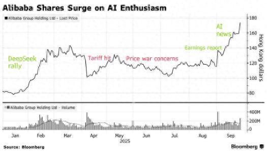 GAM Investment Management基金经理 Jian Shi Cortesi说道:“很明显,在 2022 至 2023 年期间,阿里巴巴的估值偏低,但投资者需要一个诱因来买入它——这个诱因已经出现,那就是其在人工智能领域的潜力,如今,人们越来越将阿里巴巴视为一家集人工智能和云基础设施于一体的公司,而非仅仅是一家电子商务企业。”